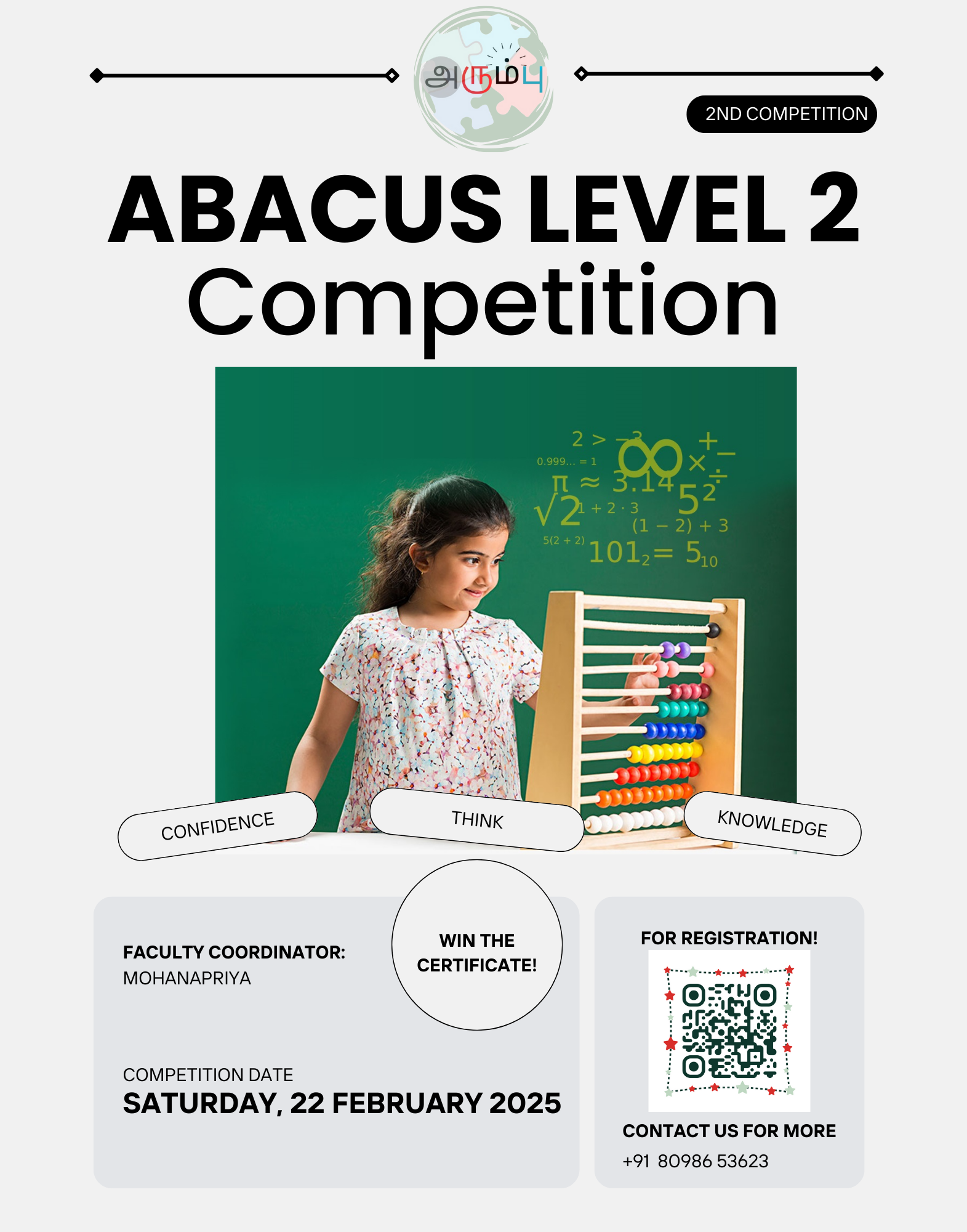 π― Abacus Level 2 Competition π β¨ Are You Ready to Test Your Abacus Skills? β¨ π Date: 23rd February 2025 π Time: 7 pm π Venue: Online π Show …