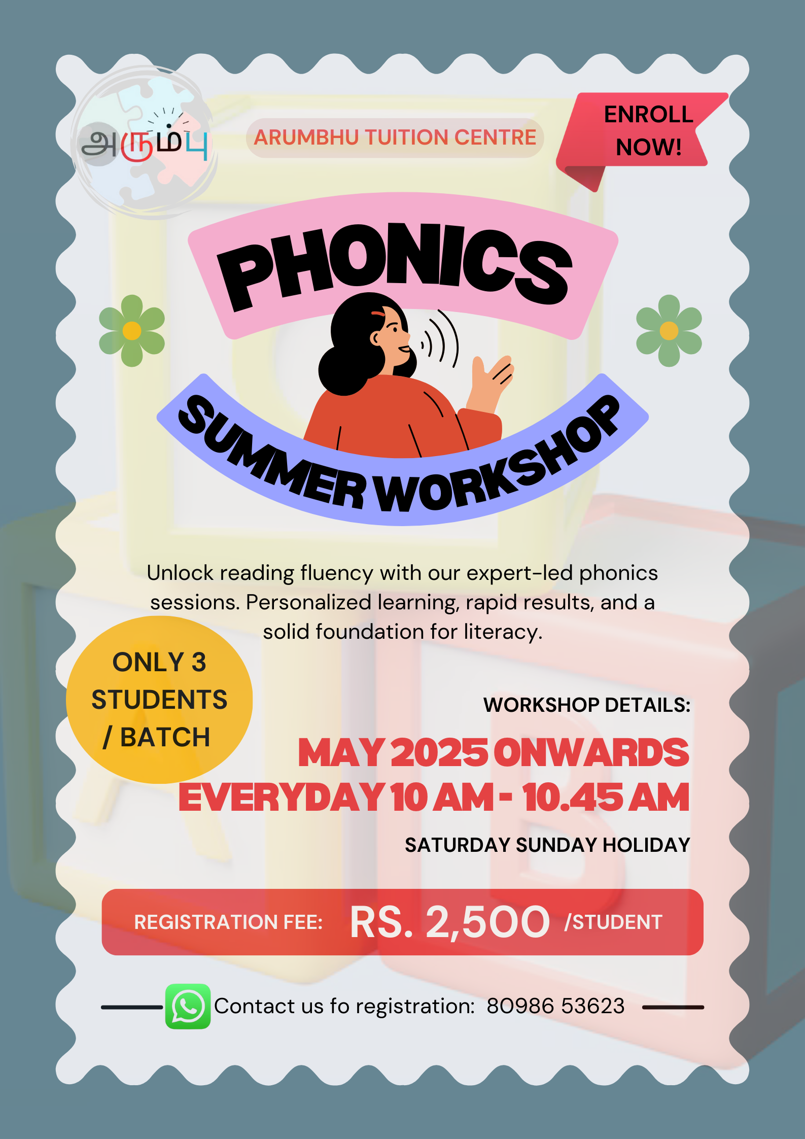 "Give your child a reading head start! Our focused phonics workshop builds essential skills in a small, supportive environment. Key Details: Schedule: Every day, Monday to Friday. 10:00 AM - …
